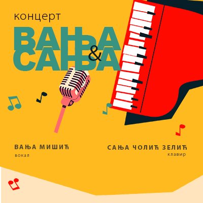У Арт дворишту Банског двора 23. јул (сриједа) 2025. године у 21.00 час одржаће се Концерт ВАЊА & САЊА (ВАЊА МИШИЋ, вокал & САЊА ЧОЛИЋ ЗЕЛИЋ (клавир).