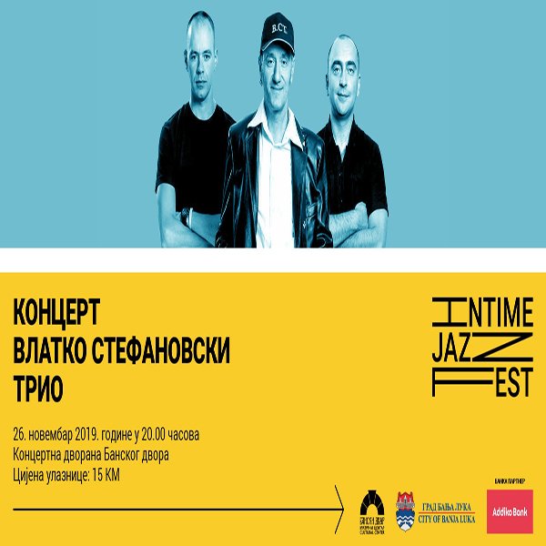 У Kонцертној дворани Банског двора 26. новембра 2019. године (уторак) у 20:00 часова у оквиру другог фестивала џез музике ИНТИМЕ ЈАZZ FEST, одржаће се концерт ВЛАТKО СТЕФАНОВСKИ ТРИА.