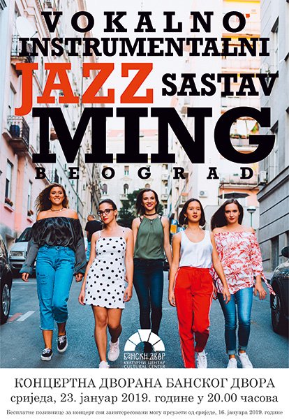 У Концертној дворани Банског двора 23. јануара 2019. године (сриједа) у 20.00 часова одржаће се концерт вокалног џез квартета МИНГ (Београд).