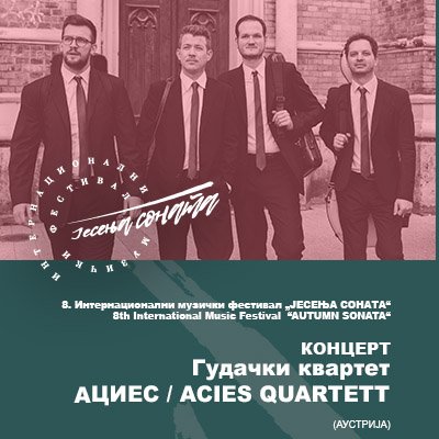 Са поносом желимо истакнути да ће овогодишњу „JЕСЕЊУ СОНАТУ“ у понедјељак 6. октобра отворити гудачки квартет „АЦИЕС“ из Аустрије – један од тренутно најзначајнијих и најактивнијих гудачких квартета на интернационалној музичкој сцени. У оквиру њихове актуелне концертне сезоне која ће саму у овојој години обухватити цјеловечерње наступе у Токију, Кјоту, Барселони, Паризу, Лондону, Шангају, Сингапуру, квартет „АЦИЕС“ ће наступити и у Бањалуци и вјерујемо на достојанствен начин отворити осмо фестивалско издање „ЈЕСЕЊЕ СОНАТЕ“.