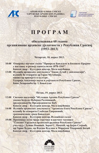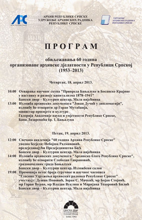 Програм обиљежавања 60 година архивске дјелатности у Републици Српској