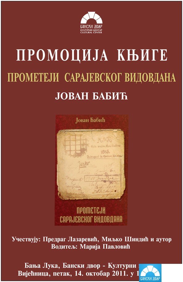 sa početkom u 19,00 časova održaće se promocija knjige Jovana Babića pod nazivom