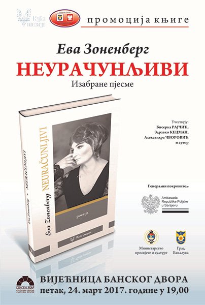 У Вијећници Банског двора 24. марта 2017. године (петак) у 19,00 часова биће промовисана књига „Неурачунљиви“, аутора Еве Зоненберг,