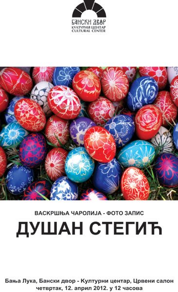 У Црвеном салону Банског двора 12.04.2012. године у 12,00 часова одржаће се отварање изложбе фотографија „ВАСКРС“ аутора Душана Стегића.