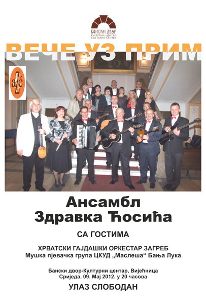У Вијећници Банског двора 09.05.2012. године у 20,00 часова одржаће се концерт Ансамбла Здравка Ћосића „Вече уз прим“ са гостима.