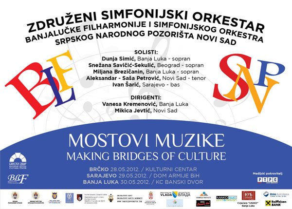 У Концертној дворани Банског двора 30.05.2012. године у 20,00 часова одржаће се концерт – Бисери оперске музике – „Мостови музике“.