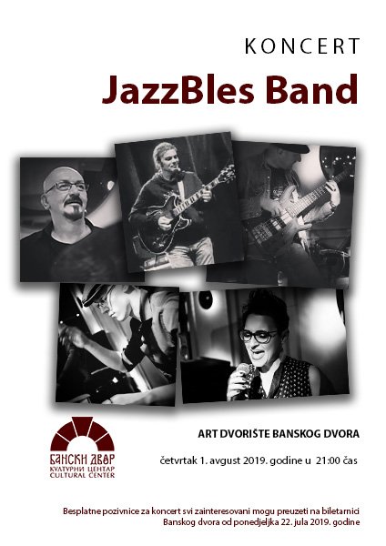 У Арт дворишту Банског двора 01. августа 2019. године (четвртак) у 21.00 час одржаће се концерт JazzBless Band.