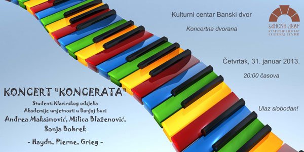 У Концертној дворани Банског двора 31. јануара 2013. године (четвртак) у 20,00 часова одржаће се концерт под називом „Концерата“.
