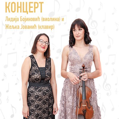 У Концертној дворани Банског двора 21. септембра 2020. године (понедјељк) у 20.00 часова одржаће се концерт ЛИДИЈА БОЈИНОВИЋ (виолина) и ЖЕЉКА ЈОВАНИЋ (клавир).
