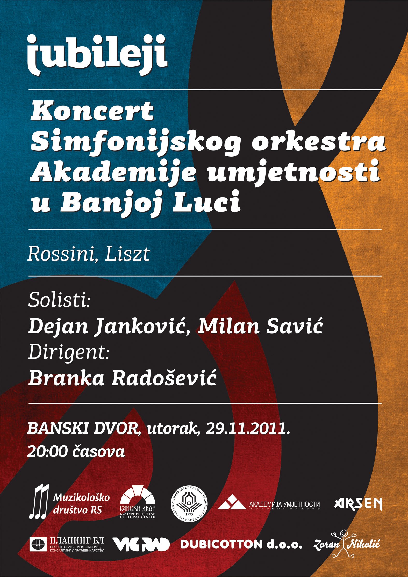 У Концертној дворани Банског двора дана 29.11.2011.године у 20,00 часова одржаће се концерт под називом „Јубилеји“.