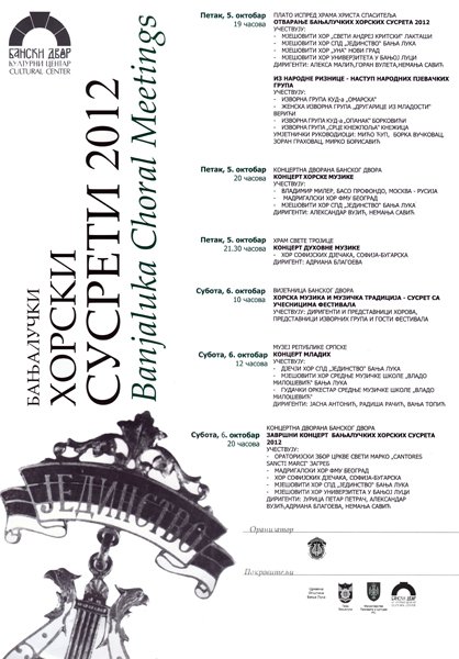 МЕЂУНАРОДНИ ХОРСКИ ФЕСТИВАЛ „БАЊАЛУЧКИ ХОРСКИ СУСРЕТИ 2012“ БАЊАЛУКА.