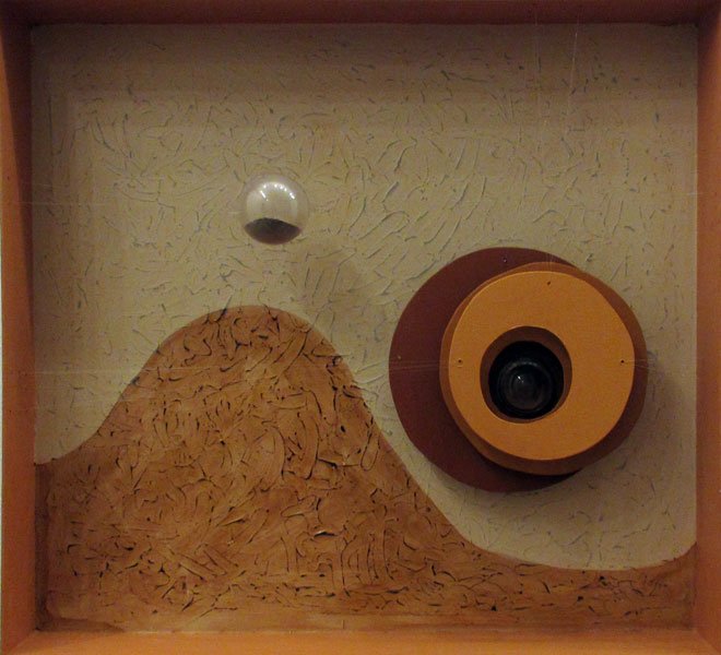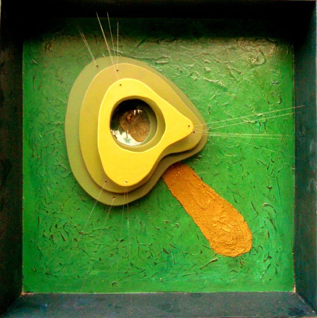Dalja istraživanja unutar polja umetnosti i težnja ka inovativnosti i eksperimentu u različitim medijima uticali su na konstruisanje kinetičkog objekta koji se lagano kreće u prostoru. Objekat je obliku kocke, sa gornje strane je otvoren, kako bi posmatrač mogao da se upozna sa njegovim sadržajem, sačinjenim od jake svetlosti, četiri asimetrična sloja organskih oblika, crteža i lupe. Prilikom kretanja, unutrašnjost objekta takođe vibrira i utiče na to da lupa konstantno menja odnos rastojanja prema crtežu, čime ga uvećava i smanjuje stvarajuću efekat treperenja i iluziju da je ceo sadržaj uronjen u vodu.