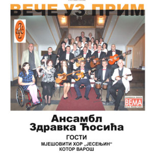 У Вијећници Банског двора 16. септембра 2013. године (понедјељак) у 19,00 часова одржаће се концерт Ансамбла Здравка Ћосића „Вече уз прим“. Гости концерта: Мјешовити хор „Јесењин“ (Котор Варош) Више о Ансамблу Здравка Ћосића: http://www.kozaraethno.com/index.php?option=com_k2&view=item&id=230:ansambl-zdravka-%C4%87osi%C4%87a&Itemid=228&lang=sr Више о тамбурици прим: http://www.tamburica.org/lat/prim.html
