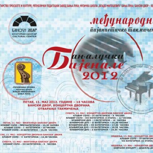 У Концертној дворани и Вијећници Банског двора 11, 12. и 13. 05. 2012. године од 09,00 часова одржаће се Треће међународно пијанистичко такмичење „БАЊАЛУЧКИ БИЈЕНАЛЕ 2012“. Дужина такмичења ће зависити од броја пријављених кандидата. Такмичење ће се одвијати у дисциплинама клавир …… Pročitaj više →