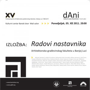 У Концертној дворани Банског двора дана 07.12.2011.године у 20,00 часова одржаће се концерт студената академије умјетности поводом дана универзитета. ПРОГРАМ: 1. С. Рахмањинов: Прелид ха – мол оп.32 бр.10 Соња Бобрек – клавир, III година …… Pročitaj više →