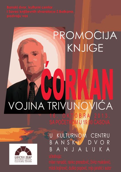 plakat-1У Вијећници Банског двора 16. октобра 2013. године (сриједа)  у 19,00 часова одржаће се промоција књиге „Ћоркан“ аутора Војина Тривуновића.
