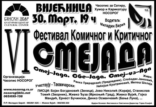 У Вијећница Банског двора 30.03.2012. године у 19,00 часова одржаће се VI Фестивал Комичног и Критичног „Смејада“